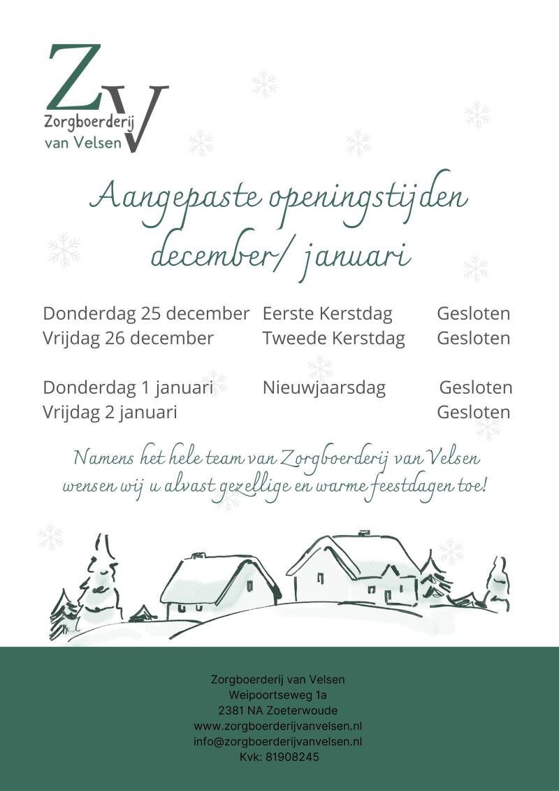 Tijdens de feestdagen is Zorgboerderij van Velsen op een aantal dagen gesloten.